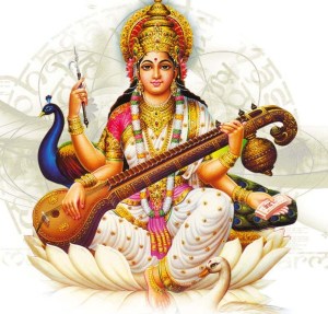 Goddess Saraswati is the ocean of understanding and the consciousness which vibrates with different types of learning. She is the source of spiritual light, remover of all ignorance and the source of knowledge. Saraswati is strongly associated with flowing water in her role as a goddess of knowledge. She is depicted as a beautiful woman to embody the concept of knowledge as supremely alluring. She possesses four arms, and is usually shown wearing a spotless white saree and seated on a white lotus or riding a white swan.